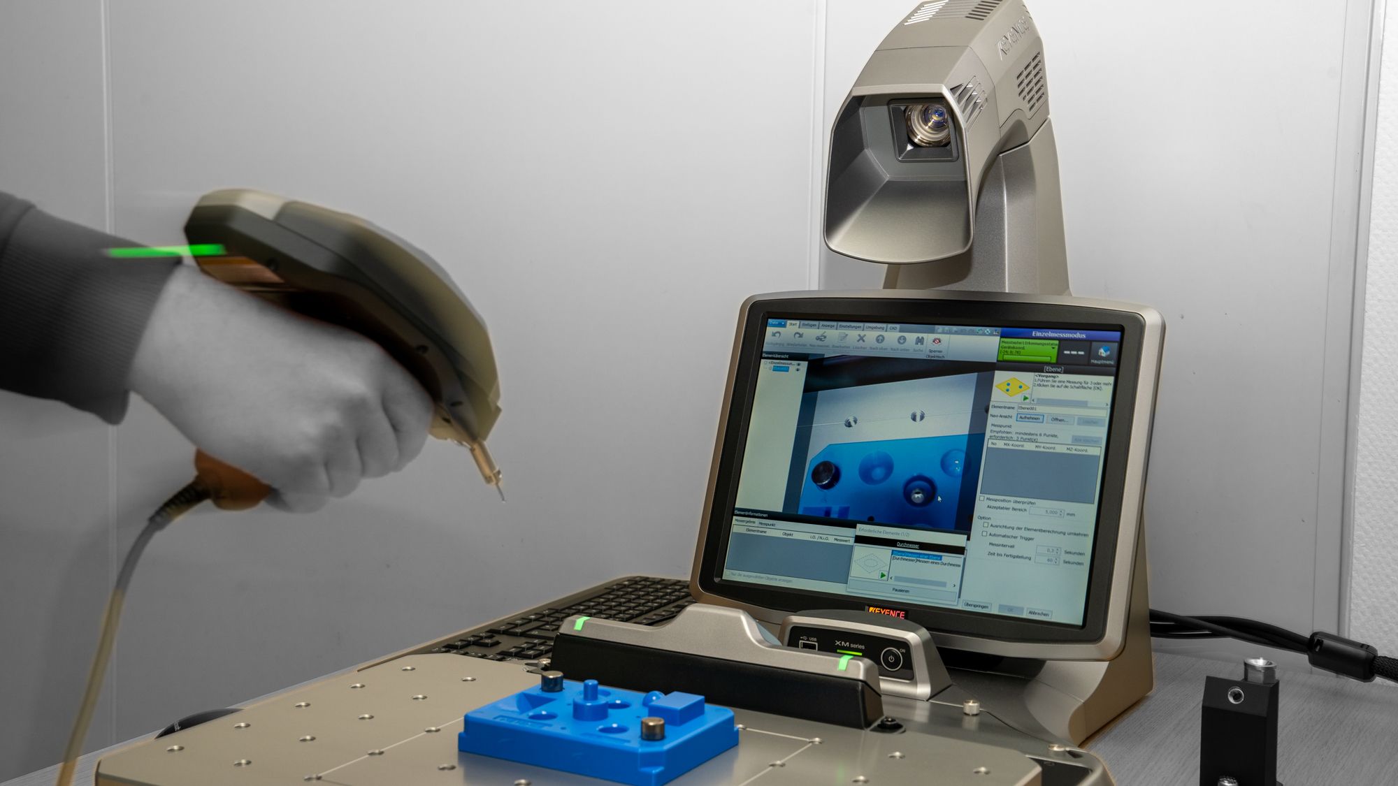 Ein neuer digitaler Messplatz der Fa. Keyence ist seit einigen Tagen bei uns im Einsatz und erhöht die Genauigkeit bei Messungen diverser Fertigungsteile. Insbesondere bei komplexen Formen sticht dieser Prüfplatz herkömmliche Handmessgeräte aus. Eine besonders hochpräzise Messung wird dabei durch eine Kombination aus Infrarotübertragungen und neuster optischer Technologie ermöglicht. Wo klassische Koordinatenmessgeräte häufig nur in klimatisierten Messräumen verwendet werden können, lässt sich dieses Messgerät an jedem Standort einsetzen, beispielsweise direkt an der Werkbank.