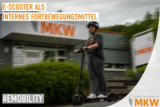 Einen neues, flottes Fortbewegungsmittel ist ab sofort Teil unserer MKW-Familie. Der vollelektrische Roller kann von unseren Kolleginnen und Kollegen genutzt werden um sich flink zwischen unseren Werkshallen zu bewegen oder um zu Geschäftspartnern in der Nähe zu fahren. Bis zu 45 km Reichweite bei 25 km/h max. machen dies möglich.