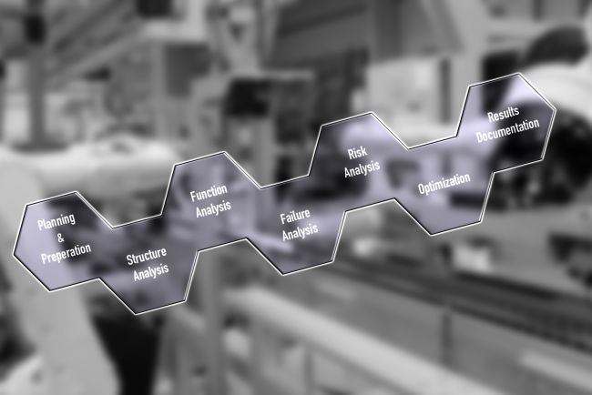 Die FMEA besteht aus einer Reihe von Schritten, die aufeinander aufbauen. Zunächst werden die Prozessschritte oder Komponenten identifiziert, die in der FMEA analysiert werden sollen. Anschließend werden mögliche Fehlerquellen und deren Auswirkungen auf das System oder den Prozess identifiziert. Diese Fehler können intern oder extern sein und z. B. durch Materialfehler, Bedienungsfehler oder Konstruktionsfehler verursacht werden.