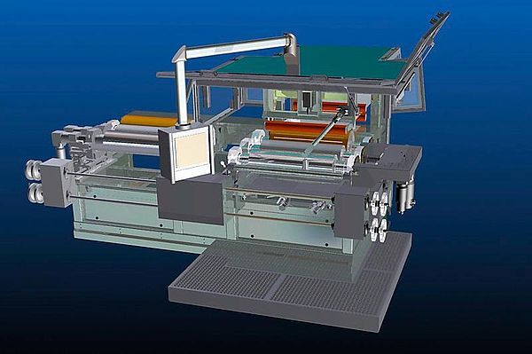 The double coater is used to coat strip material with solvent-based paints. The material is coated on the double coater with the aid of two driven rollers. One roller removes the coating from the coating pan and applies it to the passing strip material with the aid of an application roller. The respective layer thickness is set manually by adjusting the rollers accordingly.