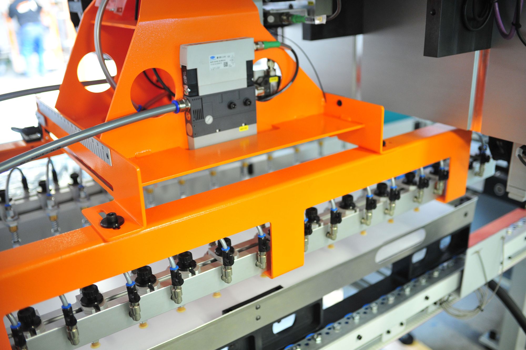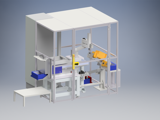 A robotic cell with anyfeeder system on which a large number of parts can be fed as bulk material. A robot removes the parts and then feeds them to an eddy current inspection system to inspect the parts at high speed. Ideal for unmanned 100% inspection in incoming goods.