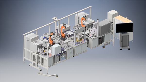 A central frame houses the core intelligence of the system including a web-based control system. The required stations are only hooked in and coupled by means of a multi-connector. Ready for production! Each station can be serviced, converted and commissioned outside of production by means of its own additional control system.